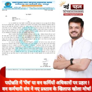 सूत्रों से प्राप्त जानकारी के अनुसार विभाग के भीतर भय का वातावरण निर्मित किया जा रहा है और कर्मचारी संगठन के पदाधिकारियों के साथ अभद्र व्यवहार किया जा रहा है। प्रमोशन में किया जा रहे तानाशाही रवैया जैसे इन तमाम मुद्दों को लेकर छत्तीसगढ़ वन कर्मचारी संघ मुख्यमंत्री को ज्ञापन सौंपने की तैयारी कर रहा है