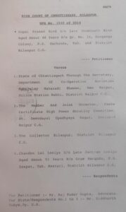 बिलासपुर- सहकारिता विभाग मे पदस्थ एक अधिकारी ने अपने आप को फर्जी जाति प्रमाण पत्र के मामले पर फसता देख माननीय उच्च न्यायालय से स्थगन आदेश पर शरण ले रखा था। जिस पर शीघ्र सुनवाई के लिए माननीय उच्च न्यायालय के समक्ष शिकायतकर्ता ने पुनः आवेदन प्रस्तुत कर आग्रह किया गया। जिस पर विचार करते हुए माननीय न्यायालय ने उक्त अधिकारी का स्थगन आदेश निरस्त कर दिया। लेकिन स्थगन आदेश हटने के बाद भी अब तक उस अधिकारी के खिलाफ किसी प्रकार की विभागीय कार्यवाही नहीं किया गया है।