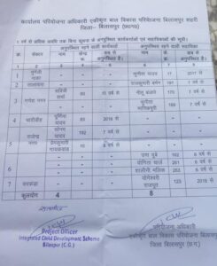 सूचना का अधिकार से प्राप्त दस्तावेज के अनुसार कार्यालय परियोजना अधिकारी एकीकृत बाल विकास परियोजना बिलासपुर शहरी मे 1 वर्ष से अधिक अवधि तक बिना सूचना के अनुपस्थित रहने वाली कार्यकर्ता एवं सहायिकाओं की सूची तैयार कि गई है जिसके अनुसार आंगनबाड़ी केंद्र क्रमांक 60 – सावित्री शर्मा (कार्यकर्ता ), केंद्र क्रमांक 83- पूर्णिमा यादव (कार्यकर्ता), केंद्र क्रमांक 192- सोनम यादव (कार्यकर्ता), केंद्र क्रमांक – 10 प्रेम कुमारी गायकवाड (कार्यकर्ता) एवं सहायिका के लिए 8 नाम की सूची तैयार की गई है. जिसमें कि केंद्र क्रमांक – 17 सुनीता यादव ( सहायिका), केंद्र क्रमांक – 191 राजकुमारी बर्मन (सहायिका), केंद्र क्रमांक – 170 नीतू बंजारे ( सहायिका ), केंद्र क्रमांक -169 सुनीता मानिकपुरी (सहायिका), केंद्र क्रमांक 162 उमा दुबे (सहायिका), केंद्र क्रमांक -261 योगिता चार्ज ( सहायिका ), केंद्र क्रमांक – 263 शालिनी मलिक (सहायिका), केंद्र क्रमांक 123 योगेश्वरी राजपूत ( सहायिका ) का नाम शामिल है. बताया जा रहा है की इनकी सूची तैयार कर अग्रिम कार्यवाही हेतु प्रकरण बनाकर नगर निगम बिलासपुर में भेजा जा चुका है. मामले पर विश्वसनीय सूत्र बताते हैं कि इस तरह का प्रकरण पूर्व में भी नगर निगम को कार्यवाही करने हेतु भेजा गया था लेकिन एन केन प्रकरण मामले पर कार्यवाही नहीं किया गया.संभावना जताई जा रही है कि इस बार समिति कि बैठक के दरमियान इस कार्यवाही के सम्बन्ध मे महत्वपूर्ण फैसला किया जा सकता है.