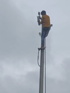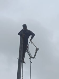 यह फोटो पर साफ देखा जा सकता है कि श्रमिक मजदूर खंबे के ऊपर चढ़कर कार्य कर रहे है. लेकिन उसके पास हेलमेट, हैंड ग्लव्स, सेफ्टी बेल्ट, मजबूत जूते उपलब्ध नहीं है. संबंधित ठेकेदार द्वारा नियमतः इन मजदूरों को सुरक्षागत दृष्टिकोण से यह सारे सामग्री उपलब्ध कराना था लेकिन ऐसा नहीं किया गया. मजदूरों के द्वारा अगर ऊचाई पर कार्य करने के दौरान किसी प्रकार की चुक होती है तो सेफ्टी सामग्री उपलब्ध नहीं होने के कारण श्रमिक मजदूर को गंभीर चोट लग सकती है यह कार्य प्रणाली ठेकेदार की गंभीर लापरवाही को दर्शाता है.