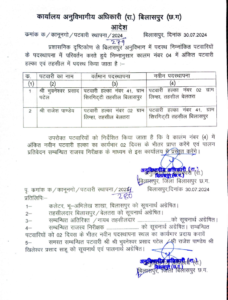 बिलासपुर – जिला में कार्यरत पटवारीयो का प्रशासनिक दृष्टिकोण से फेर बदल किया गया है जारी आदेश के अनुसार सिरगिट्टी पटवारी भुवनेश्वर प्रसाद पटेल को पटवारी हल्का नंबर 2 ग्राम लिम्हा तहसील बेलतरा एवं राजेश पांडे को पटवारी हल्का नंबर 41 सिरगिट्टी पटवारी बनाया गया है. नवीन प्रतिस्थापन को लेकर दो दिवस के भीतर कार्यभार ग्रहण करने का आदेश दिया गया है.